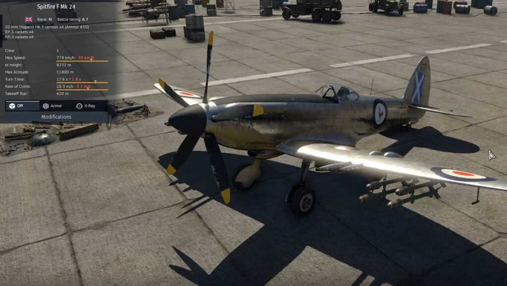Spitfire — это мгновенно узнаваемая икона для любителей авиации. Этот легендарный самолет ВВС Великобритании оснащен двигателем Rolls-Royce Griffon, который может очень быстро разогнать этот изящный маленький самолет до невероятной скорости. Его впечатляющая маневренность и скорость гарантируют, что вражескому самолету будет трудно стряхнуть с хвоста «Спитфайр». Благодаря этим характеристикам это один из лучших самолетов для техники стрелы и масштабирования, когда самолет достигает большой высоты, чтобы быстро атаковать ничего не подозревающий низколетящий самолет, чтобы уничтожить его.