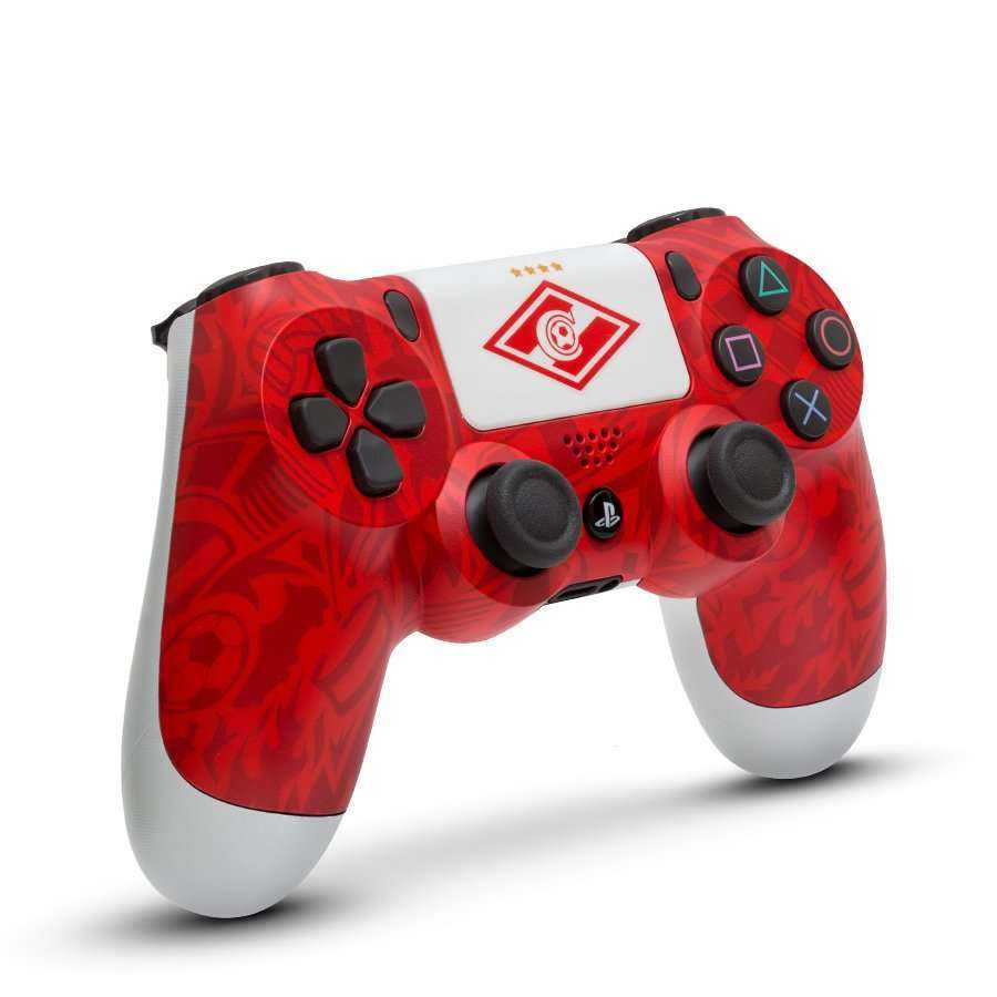 Кастомизированный геймпад дуалшок 4 Легендарный стиль классический и самый популярный дизайн коллекции ФК Спартак. Джойстик, в фирменной красно-белой упаковке, станет прекрасным подарком и обрадует любого фаната клуба. Форма, покрытие и чувствительность его парных аналоговых джойстиков геймпада создают ощущение полного контроля над процессом игры. Сенсорная панель с поддержкой нескольких одновременных касаний и функцией щелчка, открывающая доступ к новым способам игры. Кнопка Share позволяет размещать записи о своей игре в интернете. Световая панель оснащена тремя цветными индикаторами, она позволяющая системе отслеживать ваши перемещения при использовании камеры PS Camera PlayStation.