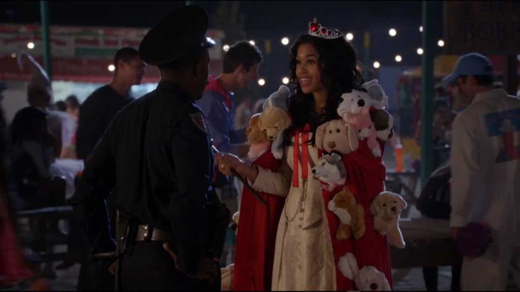 Эми Сантьяго от Хэллоуина вообще не в восторге: каждый год она мечтает, чтобы все по щелчку пальцев стали добрыми, трезвыми и полностью одетыми. Но иногда и она что-то придумывает – в меру своей фантазии типичной отличницы. Например, костюм запрещающей проход липкой ленты. Можно делать ставки, сколько казенной желтой ленты она взяла и как сильно мучилась от этого совестью.