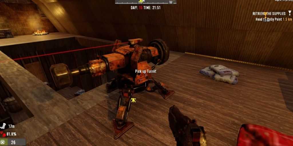 Sometimes, finding a turret can be the difference between dying or surviving on horde nights, especially early-game. However, one inconvenient requirement of turrets is that the player has to be standing quite close by in order for the turrets to activate, and they will deactivate if the player steps out of this range. The higher the turret level, the further away the player can stand without the turret deactivating.