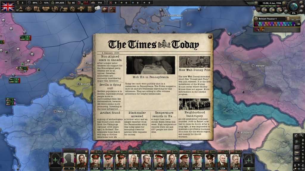 В HOI4, помимо прочего, не хватает реакции населения на происходящий в мире хаос. World News возвращает в игру газеты из Victoria II, показывая отрывки из жизни обычных людей во время войны. Конечно, некоторые элементы взяты из Victoria II, но зато мод нарушает монотонное повествование оригинальной игры, где вам приходилось лишь дожидаться создания фокусов и постройки фабрик.