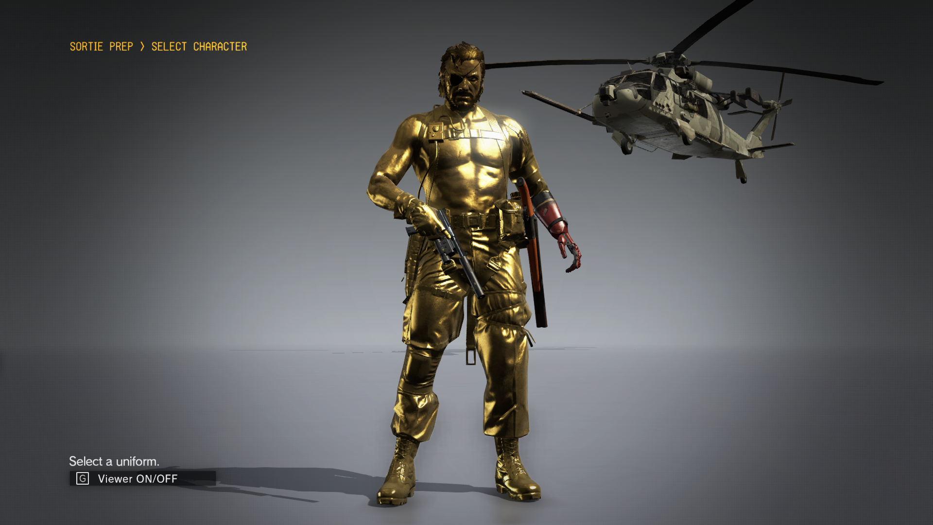 Даётся за перенос сохранений из Ground Zeroes. Бесшумная ходьба и невидимость на тепловых камерах.  Бесплатно