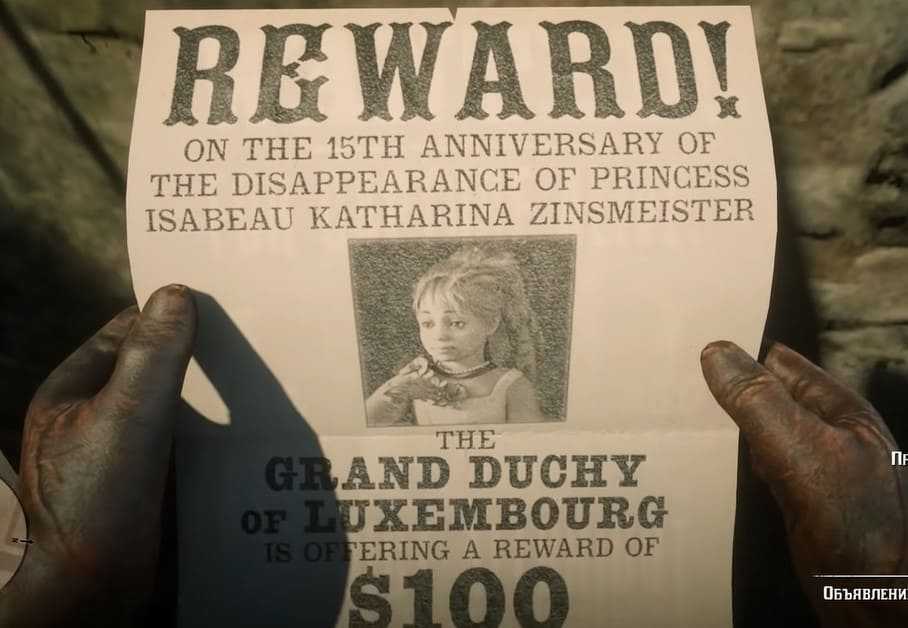 Во время блуждания по захудалому городку Торгового поста Ван Хорн к игроку может подойти странный человек, который подобрал плакат с пропавшим ребенком. Этот незнакомец оказывается частным сыщиком, работающим на правящую семью невероятно маленькой европейской страны Люксембург. Следователь разыскивает дочь королевской семьи Изабо Катарину Зинсмайстер, пропавшую без вести почти десятью годами ранее.