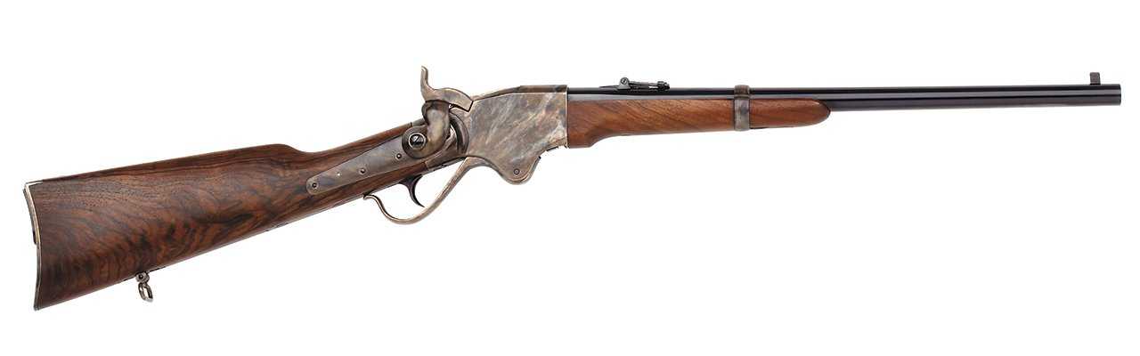 Spencer Model 1860 Carbine был оснащен примитивным магазином в виде трубки, которая располагалась в прикладе. Солдат мог с ходу расстрелять все семь патронов, из-за чего офицеры считали, что из таких винтовок будут палить не целясь — припасов не напасешься. В середине XIX века, как видите, скорострельность далеко не всем казалась чем-то хорошим.