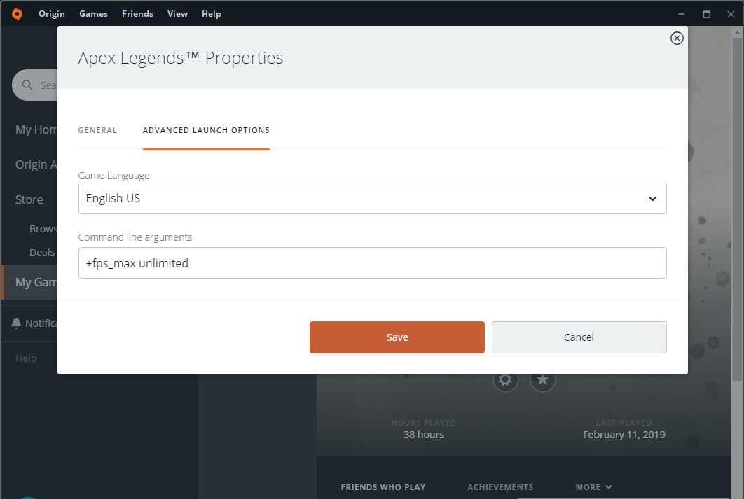 Чтобы убедиться, что у вас нет ограничения FPS в Apex Legends, вам необходимо добавить командную строку в параметры запуска Apex Legends в Steam и Origin.