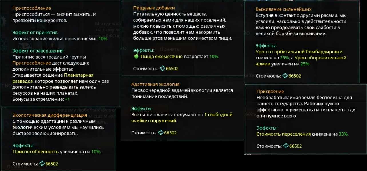 Традиции в Stellaris. Традиции приспособоления.