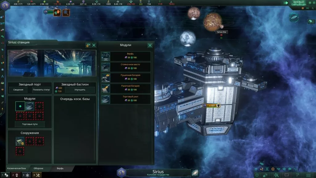 Выведите строительство своих кораблей на новый уровень! Стройте до 20 судов одновременно! Произведенные на верфи корабли получают + 100 к опыту. Мегаверфь не может быть построена: в системе с черной дырой, нейтронной звездой, пульсаром, а также в системе, где больше 1 звезды. Мегаверфь доступна к постройке при наличии DLC «Federations».