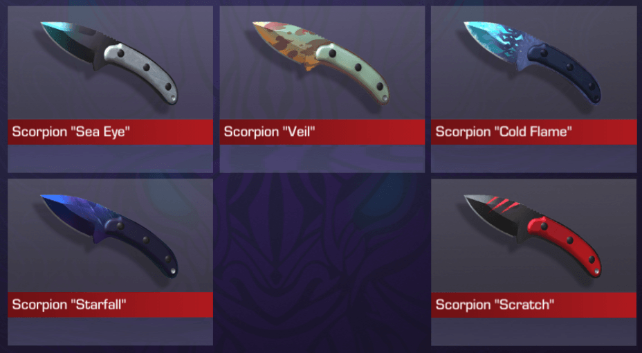 Помимо стандартной модели скучного ножа, существует множество различных скинов для ножей CS GO, которые можно разделить по стилю на 15 групп: штыки, складные ножи, ножи Gut, керамбиты, штыки M9, охотничьи ножи, ножи-бабочки, ножи Falchion, Shadow Daggers, Bowie Knives, Ursus Knives, Navaja Knives, Stiletto Knives и Talon Knives.
