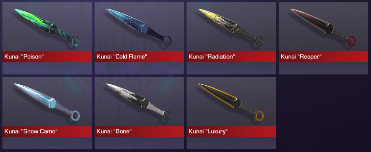 В игре есть восемь типов ножей. Они различаются по внешнему виду, способу хвата и представляют собой крайне опасное оружие ближнего боя. Давайте поговорим обо всех них, а заодно посмотрим на доступные скины.