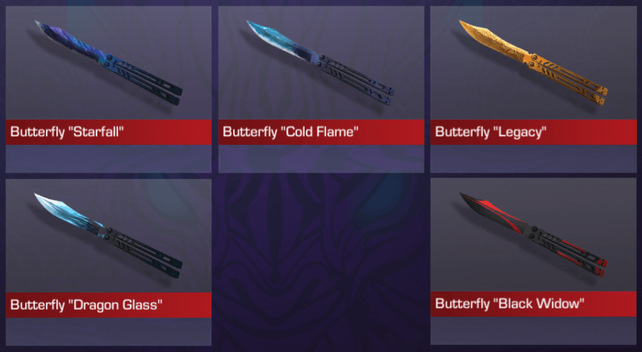 Наряду с керамбитом бабочка — самый популярный нож в Standoff 2 и CS:GO. Удивительно, что при этом в мобильной игре для него доступно всего пять скинов: