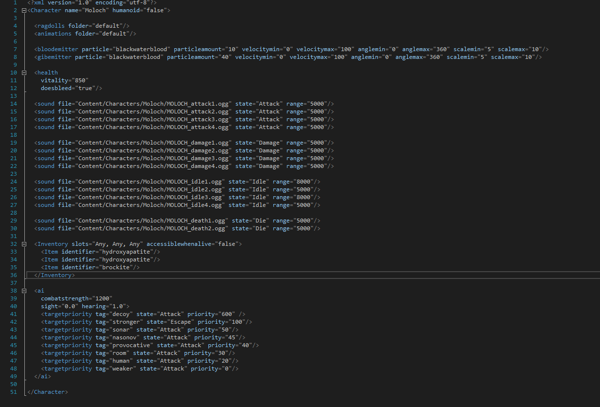 Нечеловеческий ИИ в настоящее время является всего лишь простой системой состояний, где ИИ определяет, какую цель он должен приоритизировать в данной ситуации. В блоке “ai ” вы можете определить эти приоритеты: какие вещи персонаж должен нацелить, какое состояние он должен использовать при таргетинге и какой (базовый) приоритет должен быть предоставлен этой цели. Фактический приоритет определяется динамическими факторами, такими как расстояние до цели. Некоторые факторы могут быть изменены .XML. Давайте подробнее рассмотрим самые важные из них: