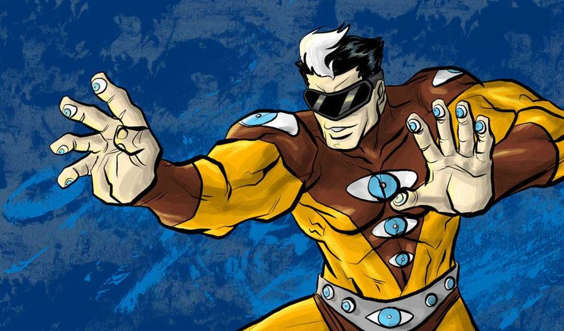 Ослепленный взрывом на складе, Филлип Рирдон думал, что больше никогда не сможет видеть. Пока какой-то шарлатан не начал его убеждать, что он может прикрепить сетчатки к его кончикам пальцев. Это не представляется возможным с медицинской точки зрения, но, вы знаете, комиксы.
