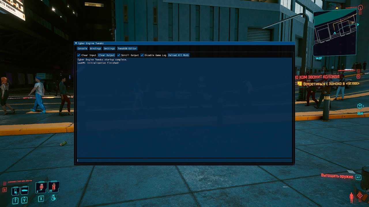 Кроме того, мод также предлагает обычным пользователям удобный интерфейс, где можно настраивать модификации и смотреть, не конфликтуют ли они между собой. Еще один небольшой, но приятный бонус Cyber Engine Tweaks – улучшение производительности и доработка некоторых багов игры. Как мы и сказали ранее, ничего существенного, но тоже не помешает