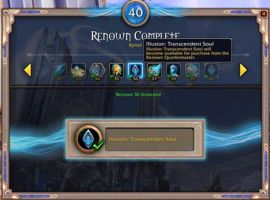То есть прокачать Известность до максимального 40 уровня можно будет за 16 недель. Но это относится только к официальному старту Shadowlands. Если вы начали прокачивать Известность позже — будете получать ее быстрее из-за специальной механики, которая позволяет «догонять» текущий кап.