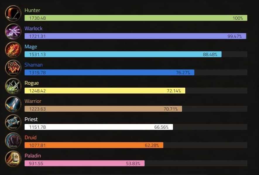 Как обычно, Хант впереди планеты всей. Кому не позавидуешь, так это Воину. Он опять будет отставать от всех классов. Единственное, с чем я не согласен, так это с рейтингом Магов. С помощью аое-билда они смогут быстро оторваться от других героев.Порой очень сложно выбрать класс, потому что мозг будет требовать разнообразия, а душа желать победы. Кому-то ужасно хочется успевать нагибать в ПвП-режиме и убивать Иллидана, проходя ПвЕ-контент. На двух стульях можно усидеть, если правильно выбрать, однако каждое направление будет требовать колоссального количества времени. Некоторые, например, качают Чернокнижника, а потом сидят и скучают, поскольку весь геймплей данного героя — одна кнопка. Это если мы говорим о ПвЕ. Чуть ниже вы можете ознакомиться с дпс-таблицей, после которой вам станет чуть проще.